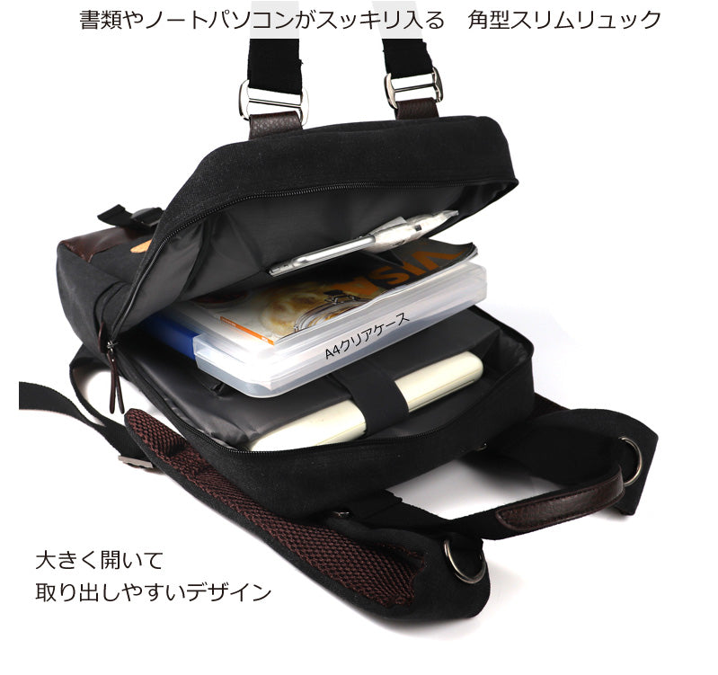 薄×角型でスッキリ ノートPC専用保護クッション入り 持ち手の付いたA4トートリュック
